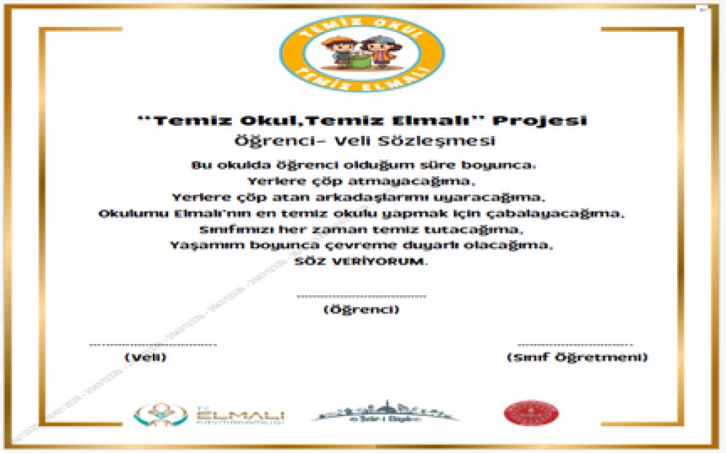 Elmalı Kaymakamlığı tarafından yürütülen “Temiz Okul Temiz Elmalı” Projesi, 2025-2026 eğitim öğretim yılında da okulumuzda uygulanmaya devam edecektir.