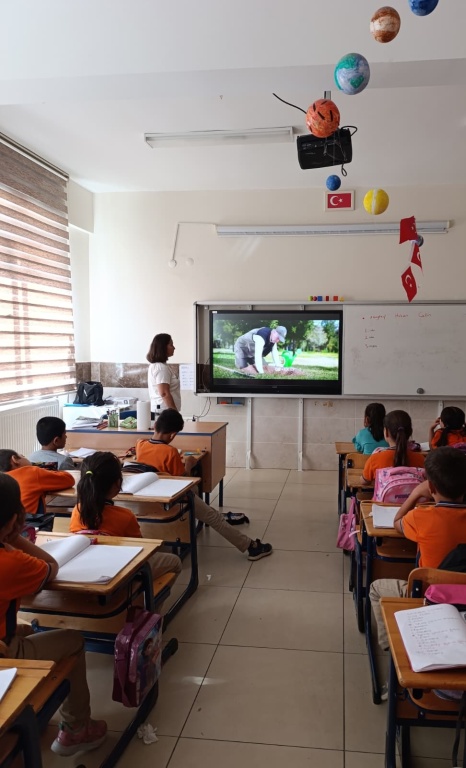 Okulların açıldığı ilk gün, tüm sınıflarda EBA üzerinden yayınlanan “Her Çocuk Bir Fidan” kısa filmi izlendi. Öğrencilerimiz, film aracılığıyla doğa sevgisi, çevre bilinci ve yeşil vatanın korunmasının önemi konusunda farkındalık kazandılar.